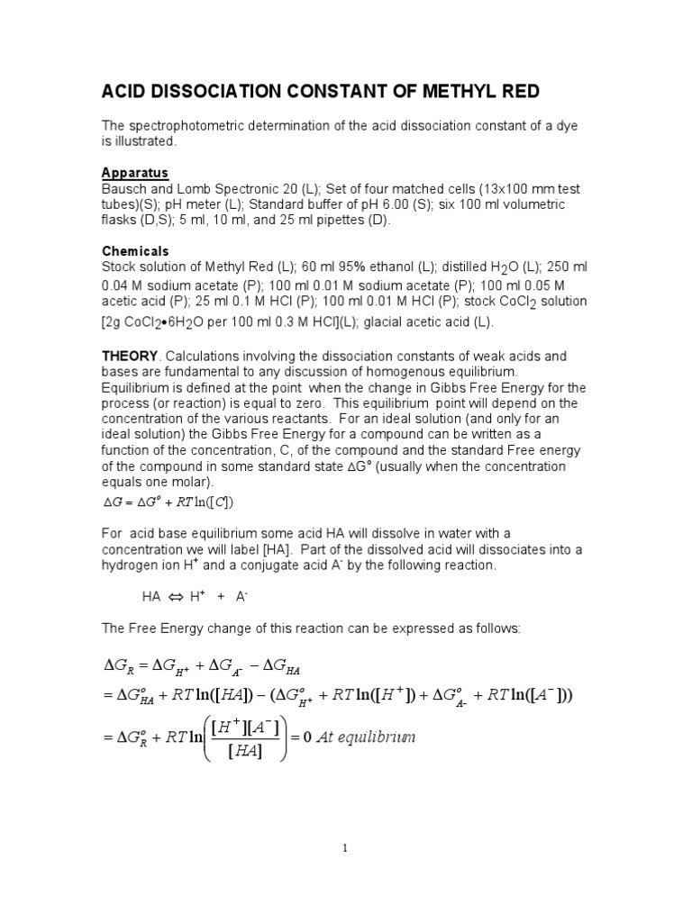 Spectrophotometric Determination Of The Dissociation Constant Of An Indicator Lab Report